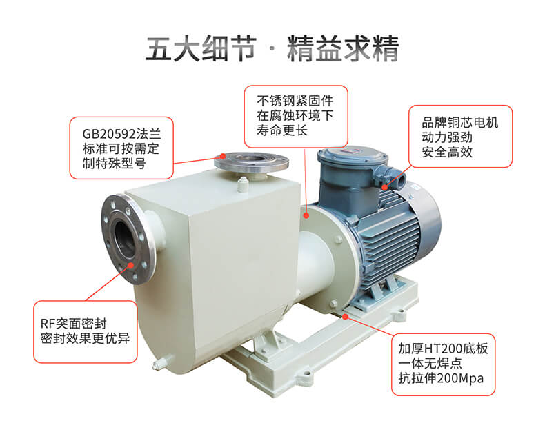 • JMCZ型自吸磁力驅動泵以靜密封取代動密封,使泵的過流部件處于完全密封狀態(tài),徹底解決了其它泵機械密封無法避免的跑、冒、滴、漏的弊病,泵體及過流部件的材料均采用了耐腐蝕的不銹鋼材料制造,既有磁力驅動泵的功能,又集自吸于一身,只需在泵次使用前灌液后,第二次及以后使用則無需灌液,直接開機即可。