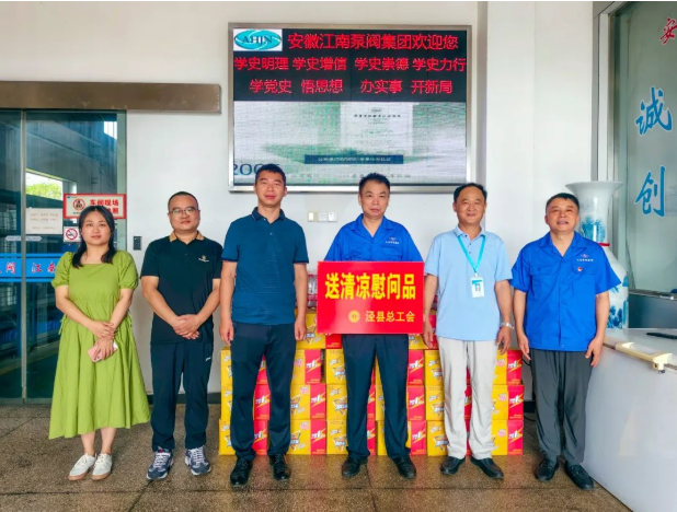 為做好夏季防暑降溫工作,確保廣大職工身心健康。7月19日,涇縣總工會副主席張尊巽一行來到安徽江南泵閥集團有限公司,開展“送清涼”慰問活動。江南泵閥董事長吳同茂、工會主席吳庶仁、運營總監(jiān)戴高巖熱情接待。
