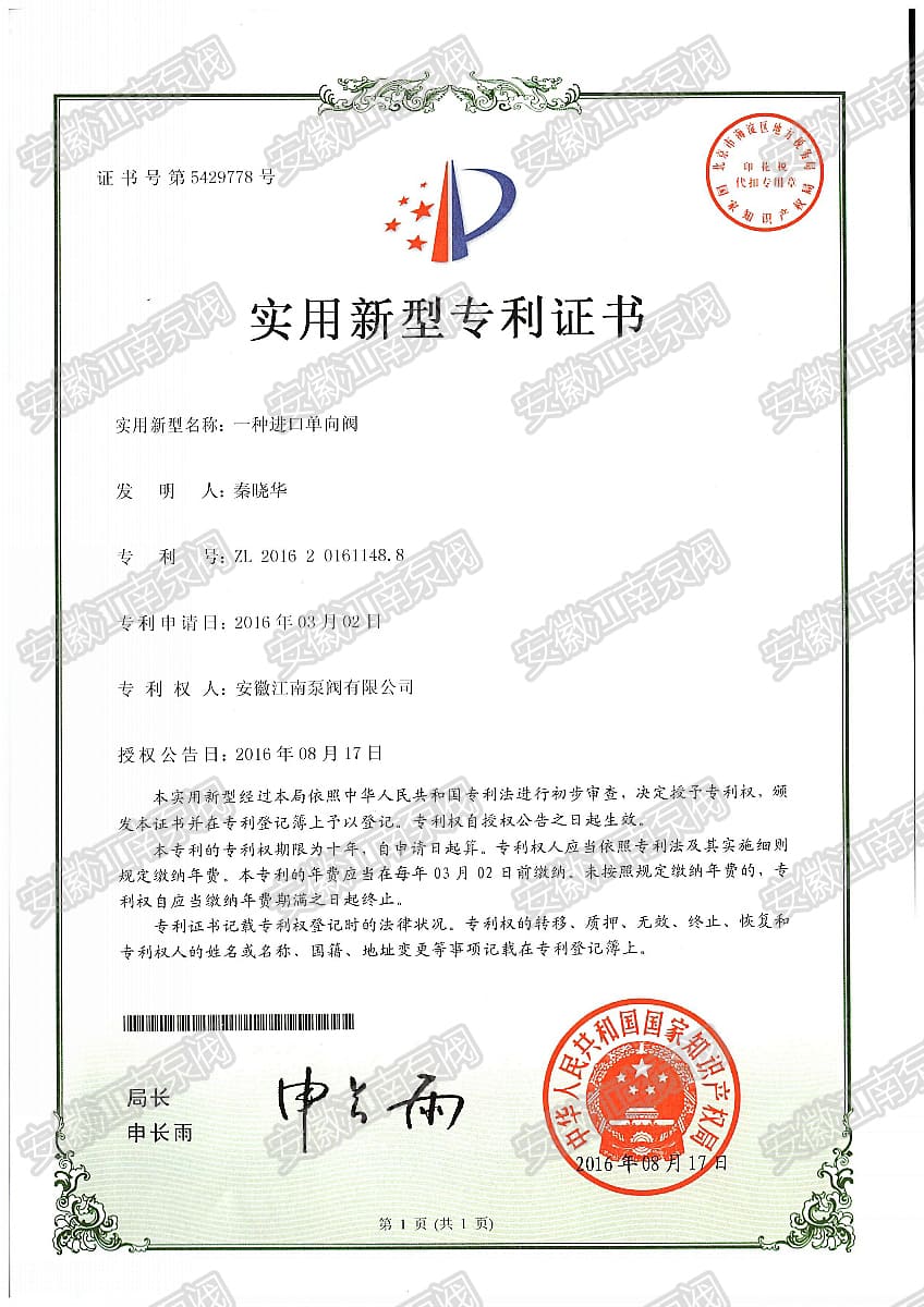 安徽江南泵閥有限公司榮獲進(jìn)口單向閥門(mén)專(zhuān)利證書(shū),主營(yíng):氟塑料泵,不銹鋼泵,耐腐蝕化工泵,品質(zhì)卓越,行業(yè)領(lǐng)跑企業(yè),科研生產(chǎn)型企業(yè)20年鑄就行業(yè)輝煌!...