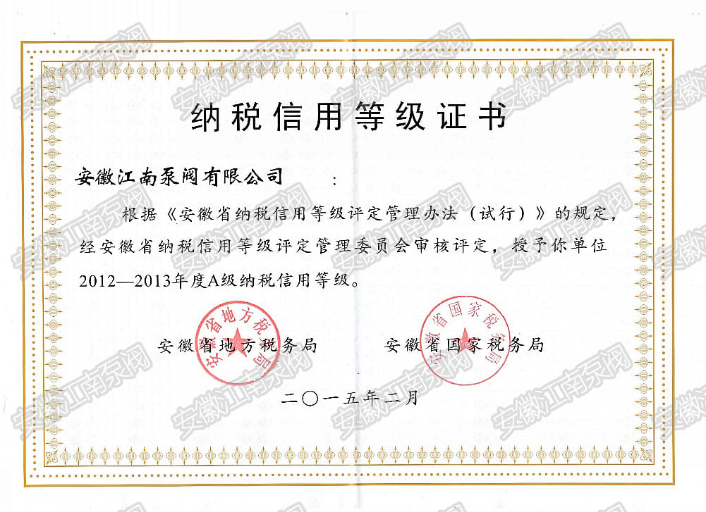 安徽江南泵閥有限公司榮獲化工泵廠家A級納稅信用證書,主營:氟塑料泵,不銹鋼泵,耐腐蝕化工泵,品質(zhì)卓越,行業(yè)領(lǐng)跑企業(yè),科研生產(chǎn)型企業(yè)20年鑄就行業(yè)輝煌!...