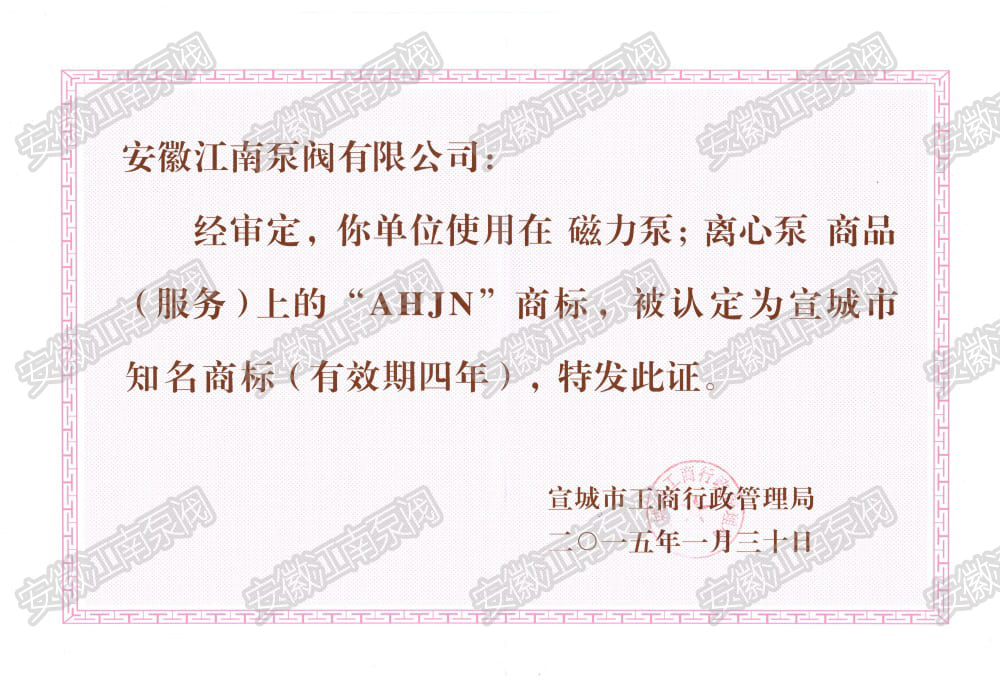 安徽江南泵閥有限公司榮獲磁力泵,離心泵宣城市知名商標(biāo),主營(yíng):氟塑料泵,不銹鋼泵,耐腐蝕化工泵,品質(zhì)卓越,行業(yè)領(lǐng)跑企業(yè),科研生產(chǎn)型企業(yè)20年鑄就行業(yè)輝煌!...