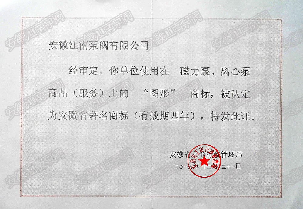 安徽江南泵閥有限公司榮獲安徽省著名商標(biāo),主營(yíng):氟塑料泵,不銹鋼泵,耐腐蝕化工泵,品質(zhì)卓越,行業(yè)領(lǐng)跑企業(yè),科研生產(chǎn)型企業(yè)20年鑄就行業(yè)輝煌!...